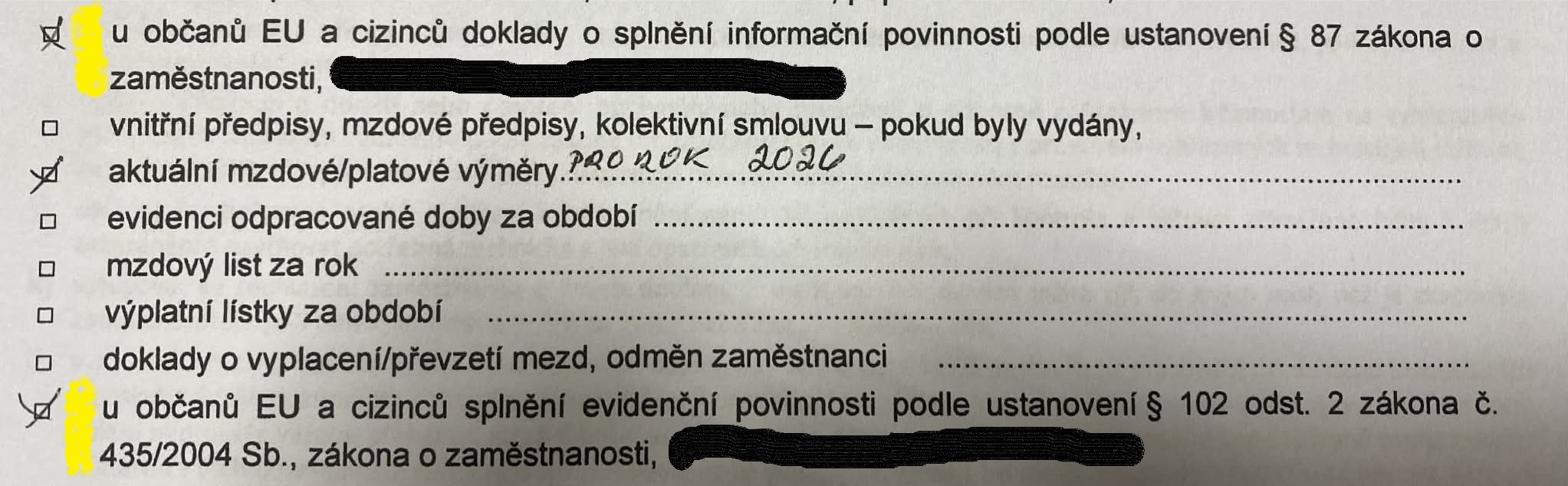 prosím o radu, jak prosím dokládáte při kontrole IP druhý žlutý bod - splnění evidenční povinnosti u cizince - § 102 odst. 2 zákona o zaměstnanosti?